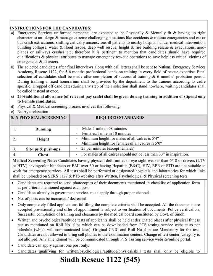 Good News! apply against Exciting Career Opportunities for various vacant posts advertised from on (Regular Basis) in Sindh Rescue 1122.